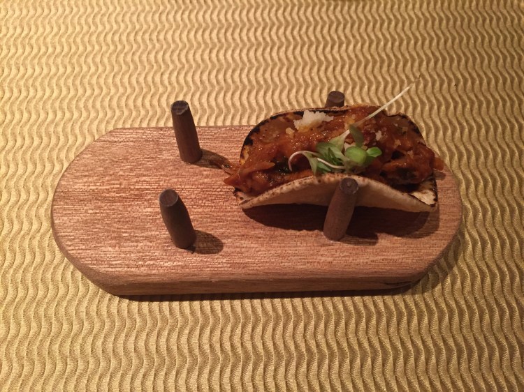 Indian Accent is located in a nice residential area, a bit outside the centre of Delhi, but was about ₹200 for an uber ride there. You enter into a nice gated area, where you see the entrance into the restaurant that kind of looks like a reception desk to a boutique hotel. You walk down a hallway before reaching the bar and dining area. There also seemed to be a large backyard for people to walk around in and chill in if they arrived early.