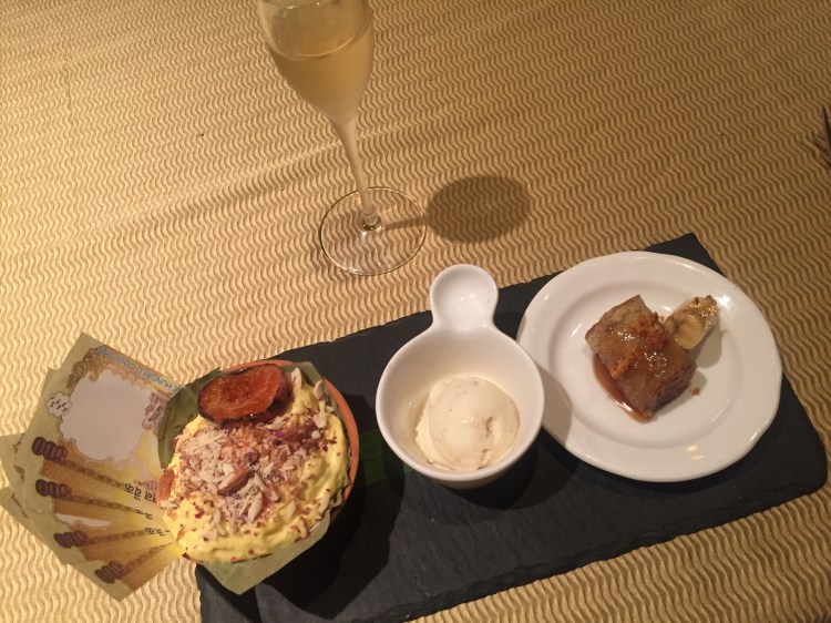 A fun little extra – before the dessert, we were ‘served’ this marshmallow looking thing that turned out to be a hand wipe. We clearly had a lot of fun with it.