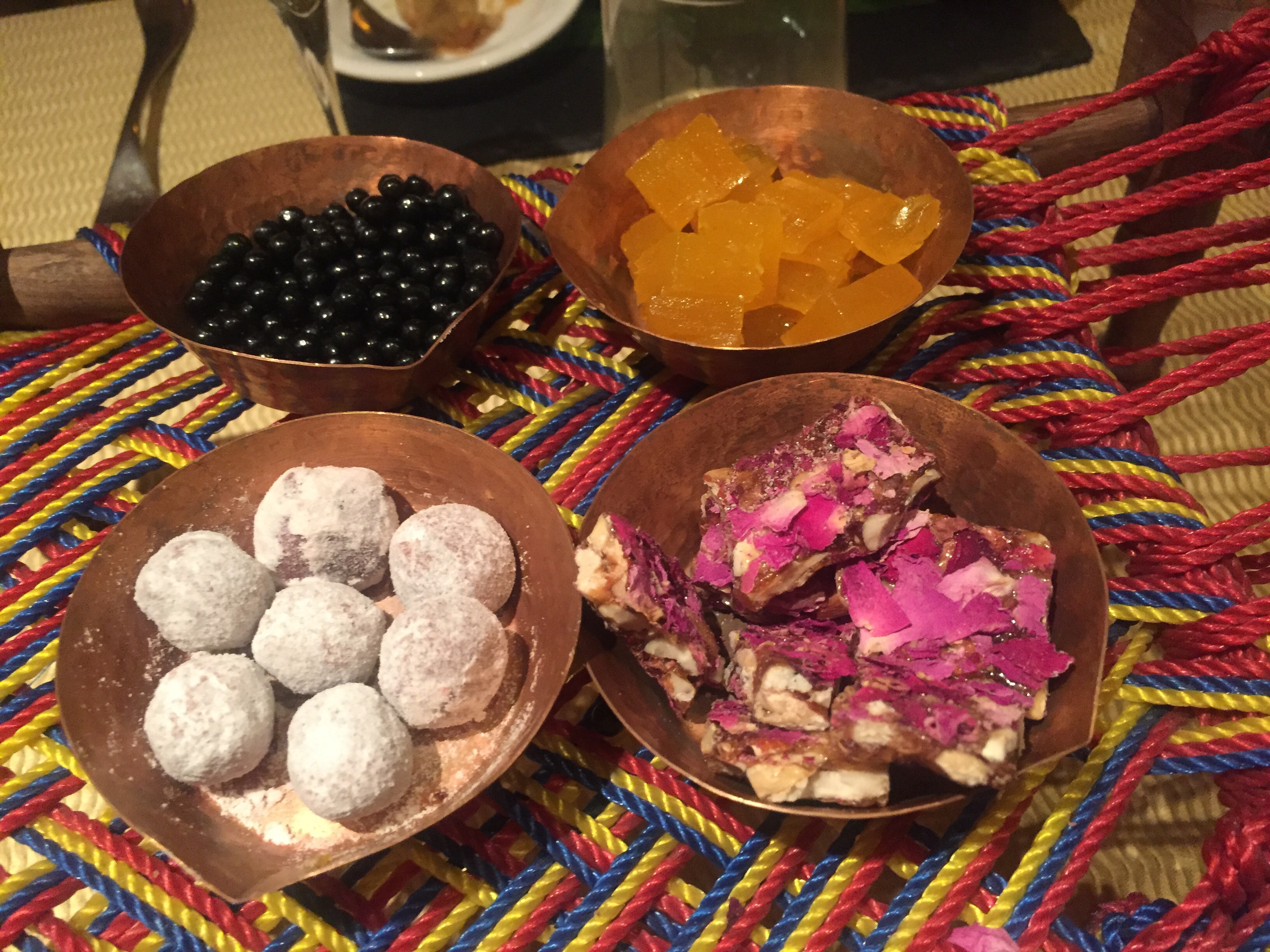 At the end of the meal we got an assortment of sweets and my favorite was definitely the rose petals sweet on the bottom right of the picture.