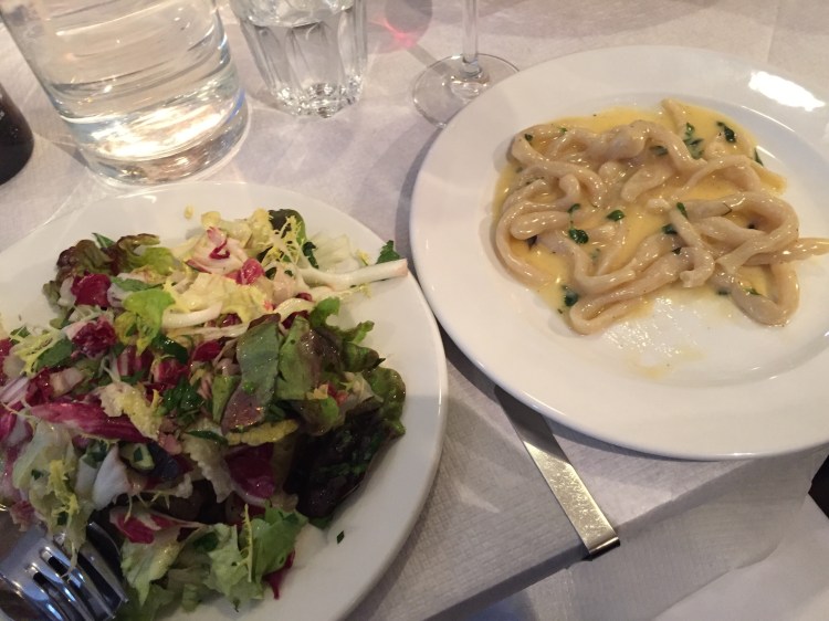 I ordered the Pici with parmesan, marjoram and golden garlic with a side salad, which turned out to look larger than the pasta! The pici is actually a starter plate, but I really wanted pasta, so decided to go with it anyways. It was good, but be warned the portion looks a bit tiny and sad. It was also just a tad too salty for me, but the pasta itself was made very nicely.