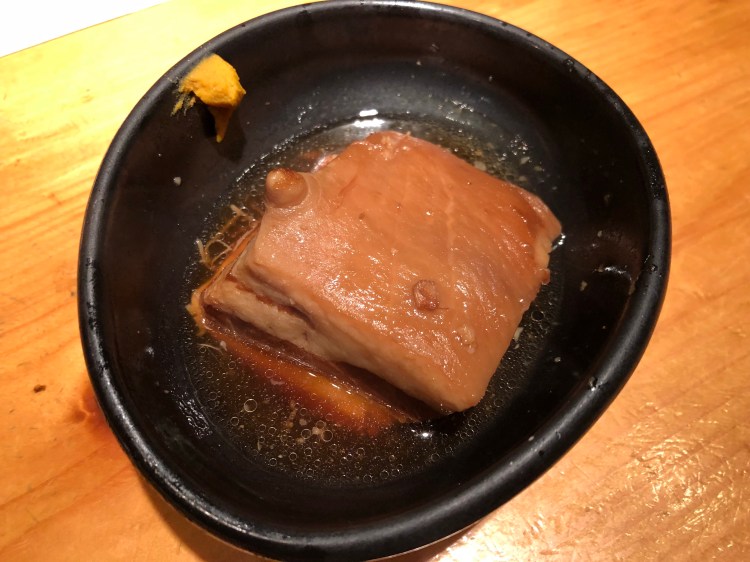 Also ordered one of my personal favourite in Japanese cuisine – buta no kakuni – braised pork belly. Nothing special to look at, but was delicious and just melted in your mouth with just enough sweetness in it.