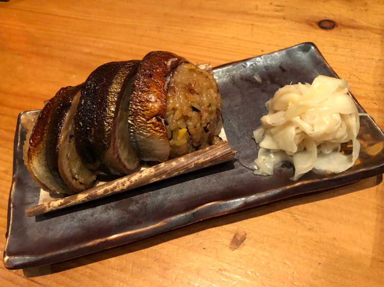 Yaki Sanma Onigiri was my boyfriend’s main dish. A rice seasoned and cooked with vegetables wrapped with grilled pike mackerel. Too fish for my liking, but he seemed to enjoy it. I did however eat a good chunk of the ginger.