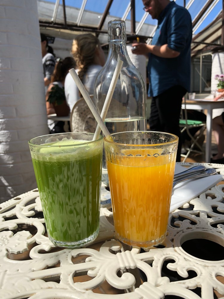 It was a beautifully hot day, so both of us got some fresh juices as a refreshment. One orange juice and one detox green juice…yum! They came with the paper straws, which I know are good for the environment, but are really not that pleasant to drink from. I personally would rather not have the straw at all. What do you think?