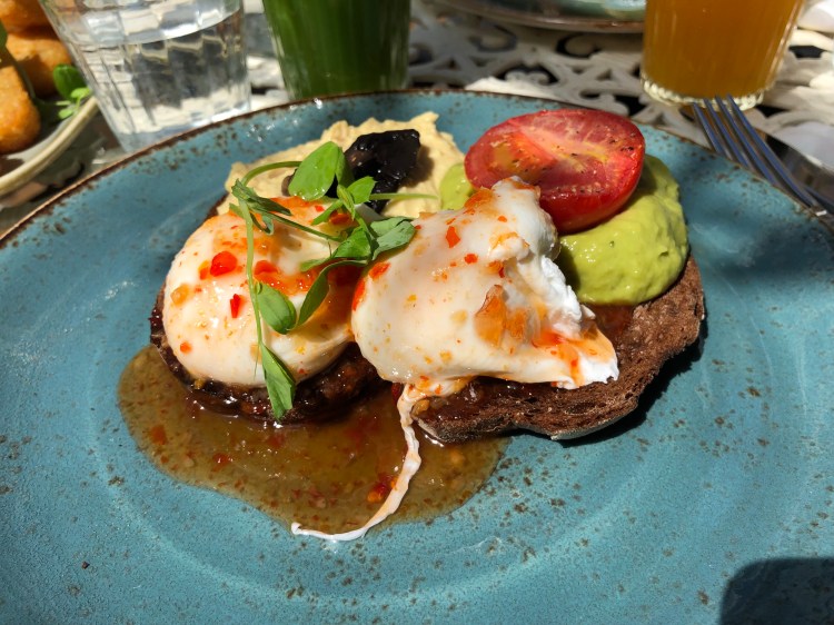 We were pretty starved by the time food arrived, and as you can see by the photo, I was ready to devour it. I have a bad tendency to always order eggs royal for any brunch place, and I’m really glad I didn’t this time. The scrumper has hummus and smashed avocados, and who can dislike either of those things?