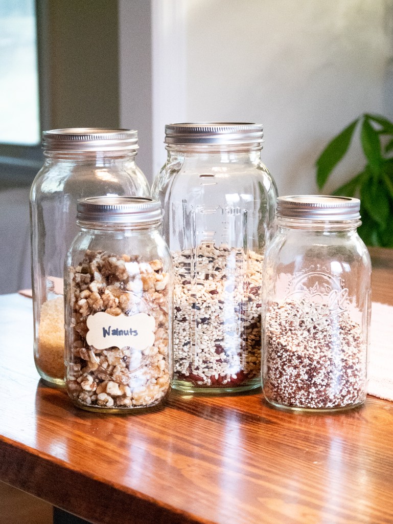 Besides buying my cleaning ingredients and things like rice and any cooking liquids (oils, soy sauce, etc.) in bulk, I’ve made a more conscious effort to buy food from the supermarket bulk section as well for grains, nuts and spices. You can skip the packaging by bringing your own containers (I use mason jars) and also only purchase what you need and not have a stash of ingredients you used for that one recipe that one time.